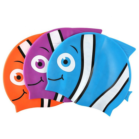 नरम सिलिकॉन सामग्री अजीब कार्टून मछली तैरने टोपी बच्चों के लिए